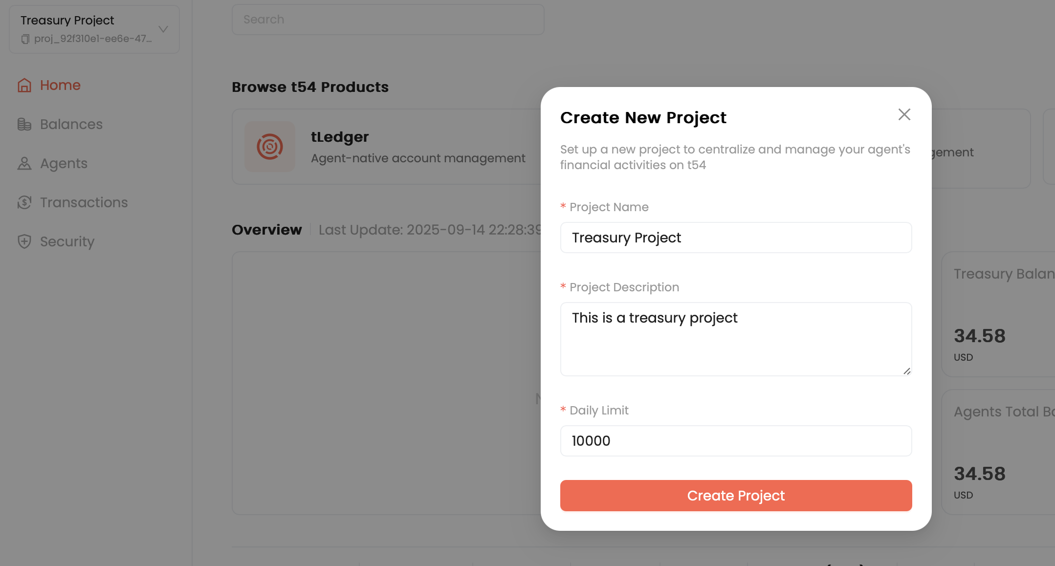 Daily Limit: Set a daily transaction limit for all agent activities within this project.